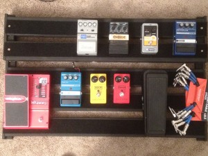 The pedal board is bordering on finished! Since I last updated you on the status of it, it has been painted, and velcroed. BOOSH!! Eat your heart out Bob Vila, you bearded… carpenter… guy, you! Sadly, I had to settle for velco strips that were smaller than the width of the boards. But no matter, …